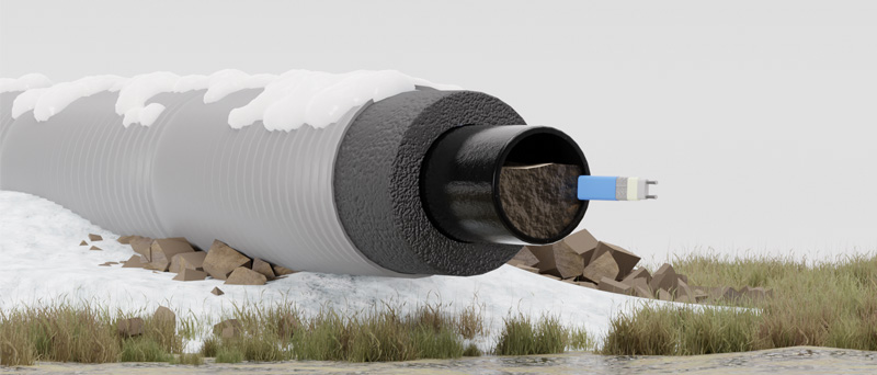 Достоинство внутреннего способа обогрева - возможность установки греющего кабеля в любой момент без выполнения земляных работ, демонтажа теплоизоляции.