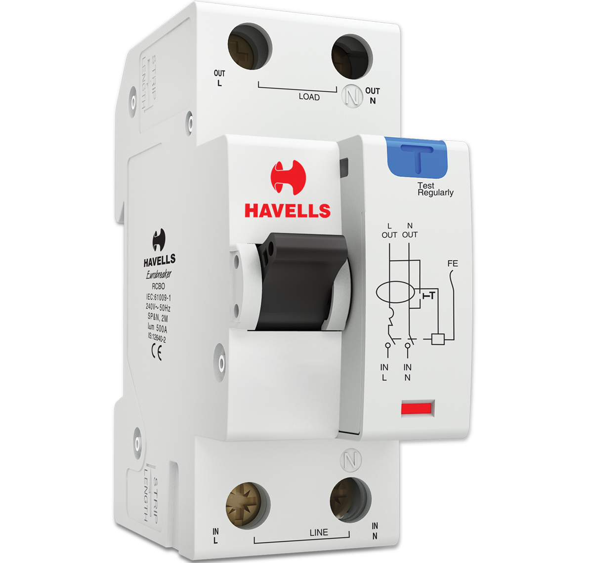 Дифференциальный автоматический выключатель 1P+N 6kA C-10A 30 мА Тип A, 2М, Havells