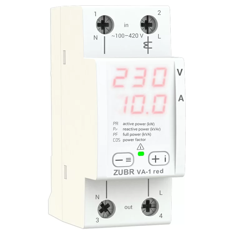 Следит комплексно за напряжением, током, cos φ, мощностью (реактивной, активной, полной) в однофазной сети: энергонезависимый журнал на 100 значений позволяет вести статистику и сохранять в памяти данные напряжения и тока, которые вышли за установленные пределы.