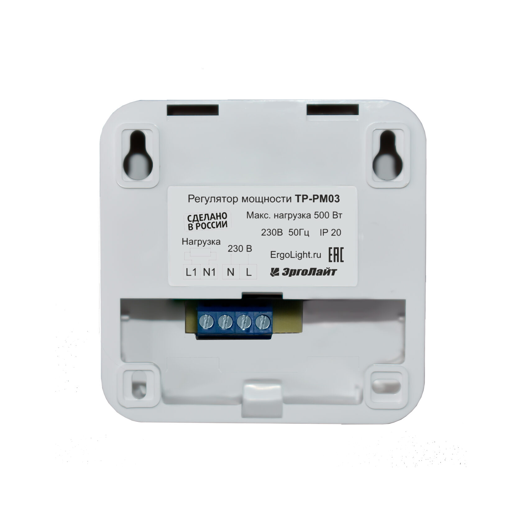 Регулятор мощности накладной ТР-РМ-03-500, белый соответствует всем заявленным характеристикам и поставляется с официальной гарантией.
