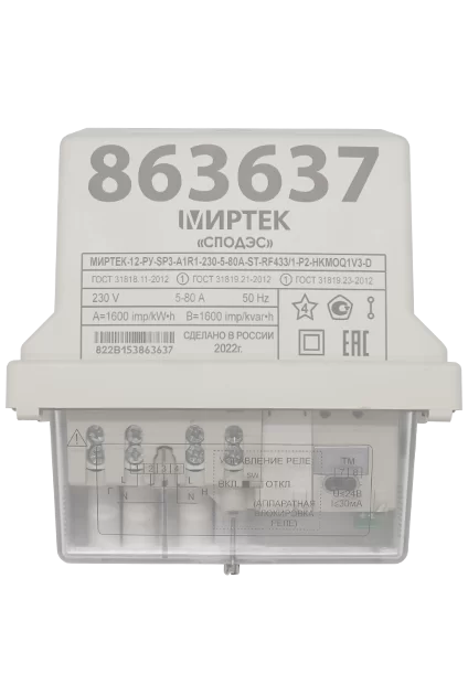 Счетчик электроэнергии МИРТЕК-12-РУ-SP3-A1R1-230-5-80A-ST-RF433/1-G/5-P2-HKMOQ1V3-D + МИРТ 830 соответствует всем заявленным характеристикам и поставляется с официальной гарантией.