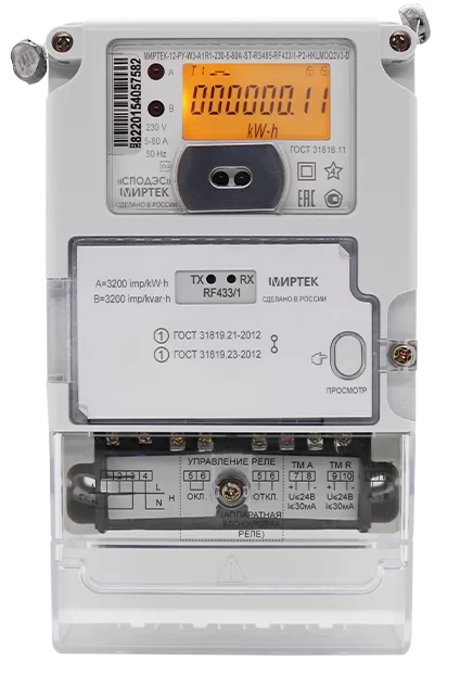 Счетчик электроэнергии МИРТЕК-12-РУ-W3-A1R1-230-5-80A-S-RS485-G/1-HLMOQ2V3