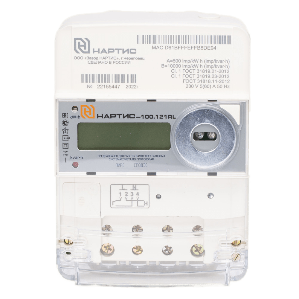 Счетчик электроэнергии НАРТИС-100.131SL соответствует всем заявленным характеристикам и поставляется с официальной гарантией.